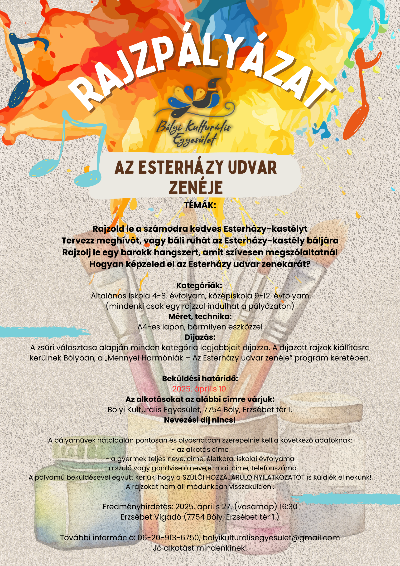 A pályamű beküldésével együtt kérjük, hogy a SZÜLŐI HOZZÁJÁRULÓ NYILATKOZATOT is küldjék el nekünk!
