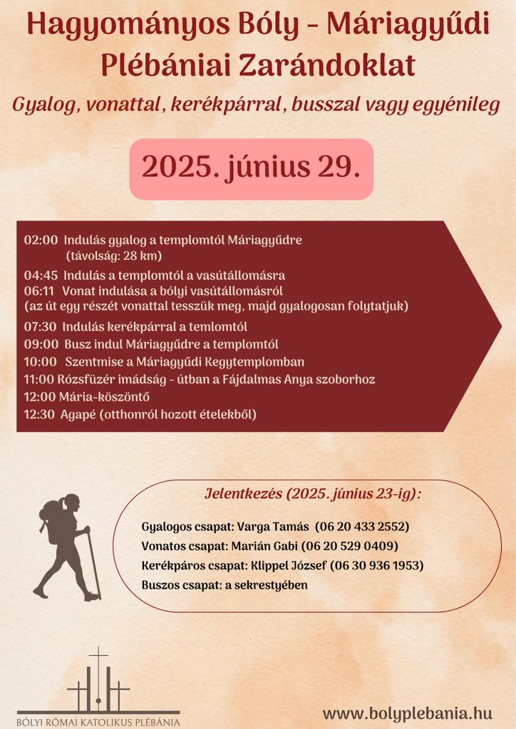02:00 Indulás gyalog a templomtól Máriagyűdre